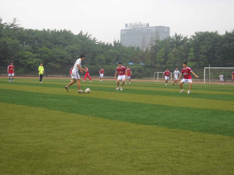 2011年10月11日中午,122cc太阳集成游戏“迎新杯”足球赛在南区足球场继续进行。今天的比赛双方是11级二班和10级二班。