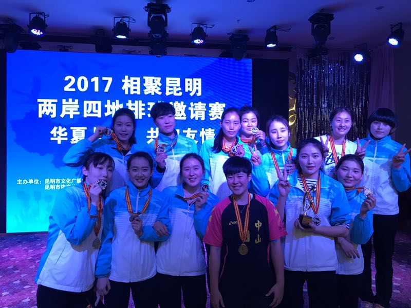 2017年2月2日—7日,“相聚昆明两岸四地排球邀请赛”,来自两岸四地九支女子排球队相聚美丽的春城。本届邀请赛以“华夏儿女 共叙友情” 为主题。参加比赛的代表队有香港青年女子排球队 、澳门女子排球队、台湾中山大学女子排球队,同时还有来自四川、太原、昆明各省市的大学、中学代表队。