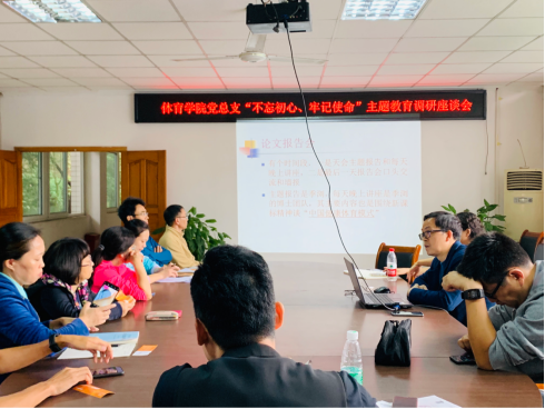 首先,122cc太阳集成游戏院长、党总支书记刘芳教授就开展“不忘初心、牢记使命”主题教育并结合体育专业建设进行调研,对课程建设、人才培养方案、教学改革、一流专业建设的申报等问题广泛收集意见和建议。并总结了近期我院为专业改革进行的一系列教师送培活动。接着王进副教授以自身参与的全国体育联盟在陕西师范大学开展的“中国健康体育模式”为主题的送培活动进行了专题座谈,主要介绍了体育课赛课课程内容设置和体育学术论文研究方法,实践与理论相结合。