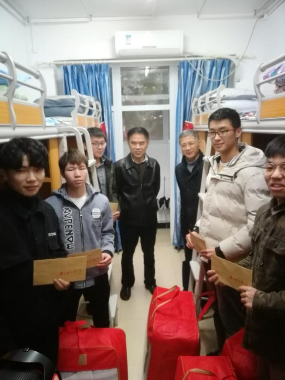李书记热情询问了同学们的籍贯、专业情况、学习情况和训练情况,代表学校向同学们送上了慰问金和过冬棉被,并鼓励同学们好好学习,衷心祝同学们新年快乐。