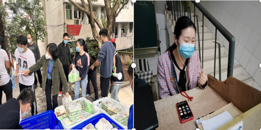 “学工人”没有一个退缩,大家都毫无怨言冲在第一线,因为要保护的是我们的“娃”。这几天来,大家担心的是“娃”们吃不吃得饱、吃不吃得好,不要耽误学习、不要焦虑。不管是学院领导,还是辅导员,都化身为“多面手”。王静书记把盒饭一个个亲自递到同学们手里,嘱咐大家注意防护;食堂和物资分发处总能看到范文杰院长“力量担当”的身影;我作为学工队伍的一员,作为离学生最近的工作人员之一,“当仁不让”的走在最前线。学生最关心的餐食送到时,我在这里;疫情防控的关键环节核酸检测时,我在这里;需要药品和紧急物资时,我在这里;因不能外出而焦躁时,我在这里;因线上学习状态不佳时,我在这里;早上学生还未起床、晚上已经入睡时,我在这里……
