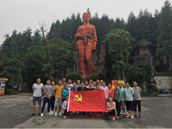 党员同志们来到华蓥山,追寻英雄足迹,接受传统教育。全体党员在党总支副书记余晓同志领誓下,面向党旗庄严宣誓。通过参观华蓥山游击队群雕、红色华蓥纪念墙、双枪老太婆雕塑、华蓥山游击队纪念馆、革命烈士纪念碑、游击队练兵场、瞭望台、游击战壕、游击步道等,深刻接受革命传统教育。青年党员郑快激动地说:“我们仰慕华蓥山英雄,特别爱读华蓥山游击队可歌可泣的史迹和“双枪老太婆”传奇震撼的故事,今天我们来到这里,就是要弘扬红岩精神”。