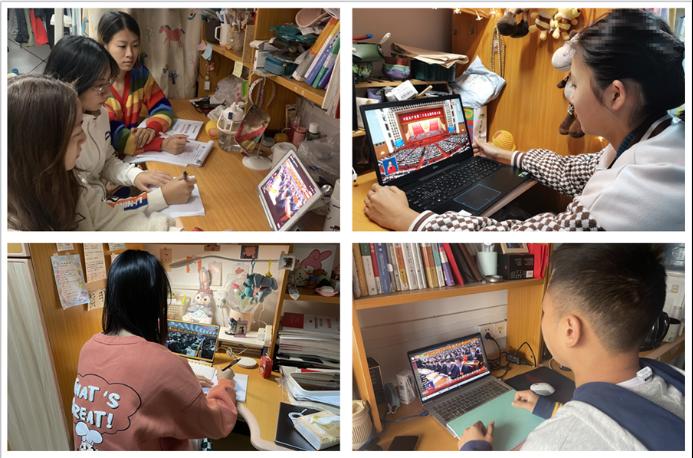 学院其余48名教职工在家中自行观看直播盛况,学生党支部、团委组织全体本科生、研究生等339名同学在宿舍观看。当习近平总书记讲到“团结就是力量,团结才能胜利。新时代的伟大成就是党和人民一道拼出来、干出来、奋斗出来的!”时,全体师生报以热烈持久的掌声,表达了内心的激动与共鸣。