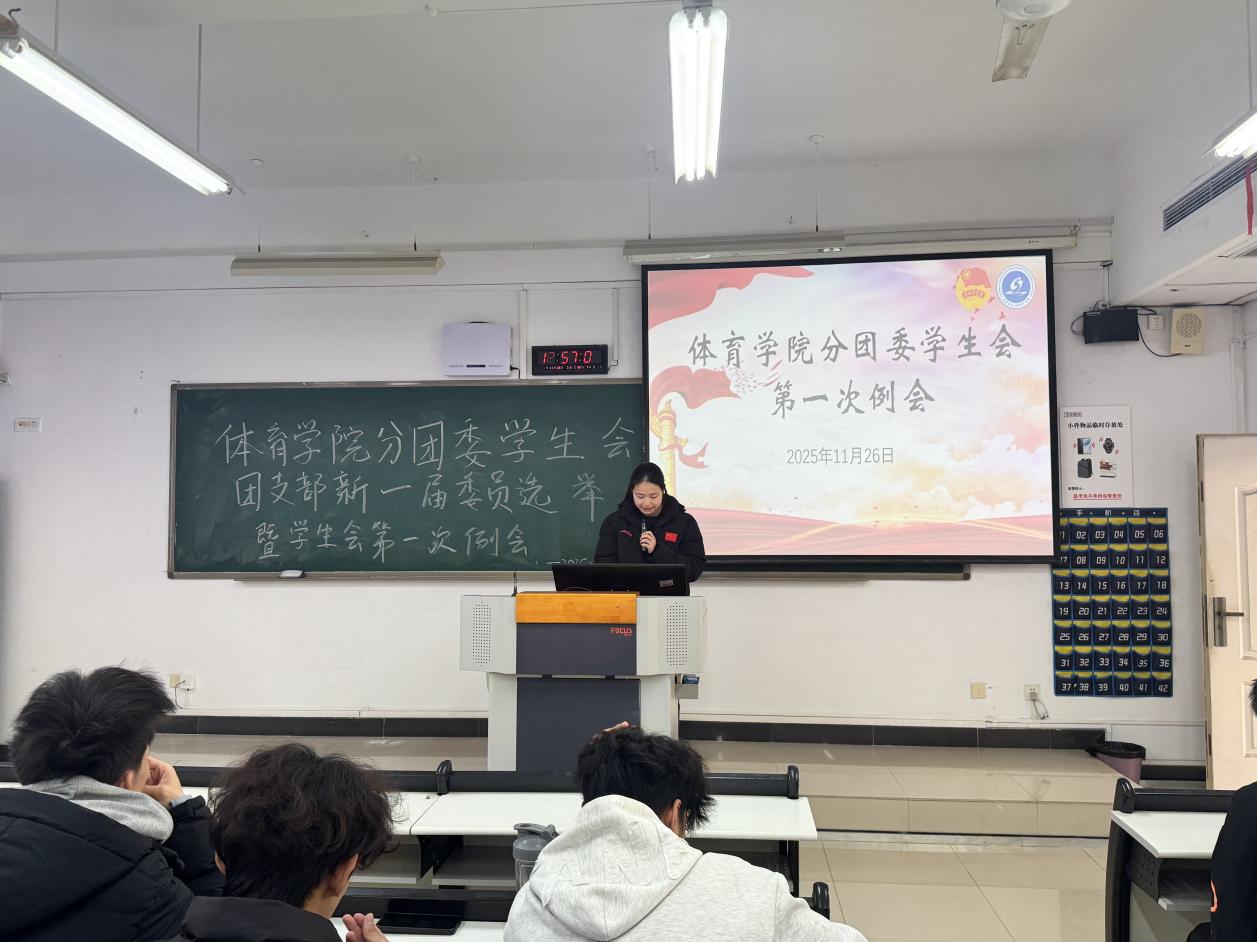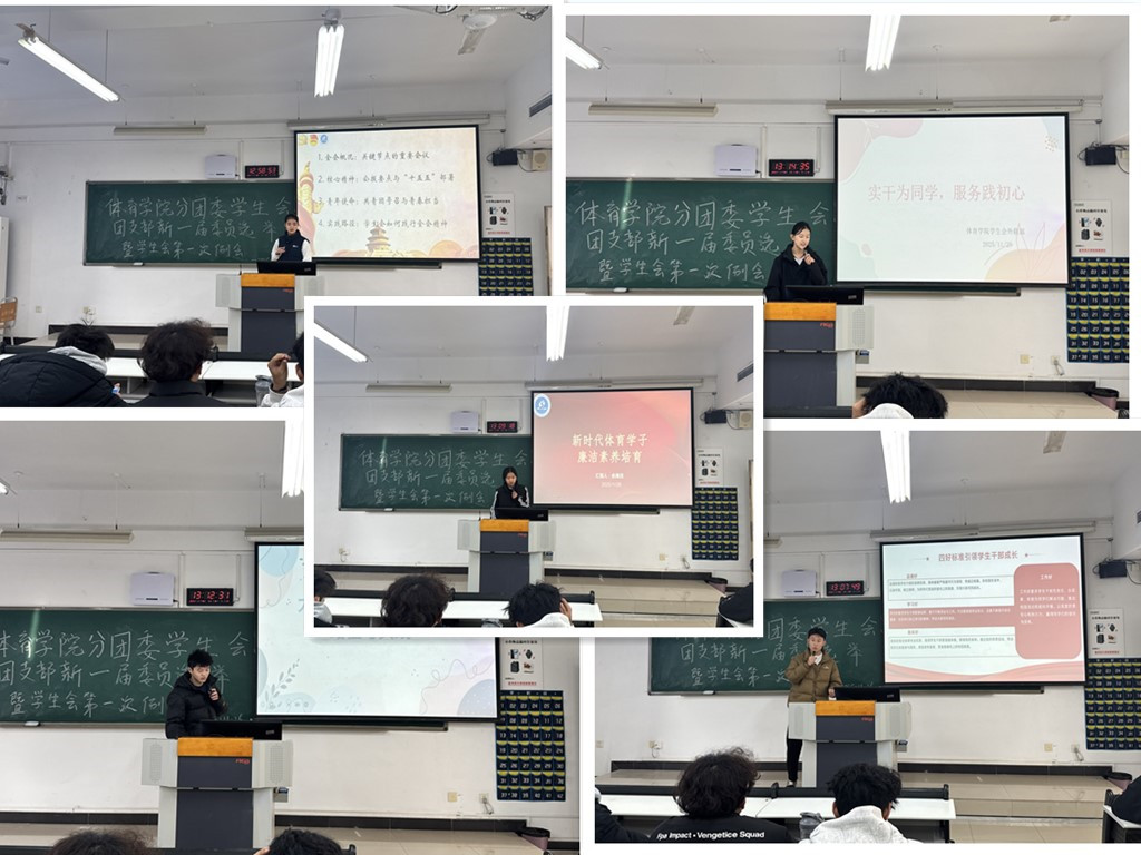 首先,分团委副书记李艺芳带领大家深入学习党的二十届四中全会精神,从全会核心要点、“十五五”规划部署等维度,结合共青团青年使命号召,引导学生干部将个人成长与时代发展紧密结合,明确“以青春担当践行全会精神”的行动目标。随后依次做了分享,素拓部执行主席王伟杰以“争做‘四好’学生干部”为主题,阐释“品德好、学习好、身体好、工作好”的干部标准,鼓励大家以过硬作风和责任意识,在服务同学、组织活动中发挥骨干作用。办公室执行主席余禹佳围绕“新时代体育学子廉洁素养培育”分享,强调学生干部需严守廉洁底线,以清朗作风筑牢服务根基。体育部执行主席廖鑫在素养与服务专题环节,聚焦“大学生网络素养提升”,从理性用网、网络安全等角度,提出实用的网络素养提升路径;外联部部长王棋以“实干为同学,服务践初心”为核心,分享部门服务理念与新学期工作规划,传递“以实际行动解决同学需求”的工作宗旨。