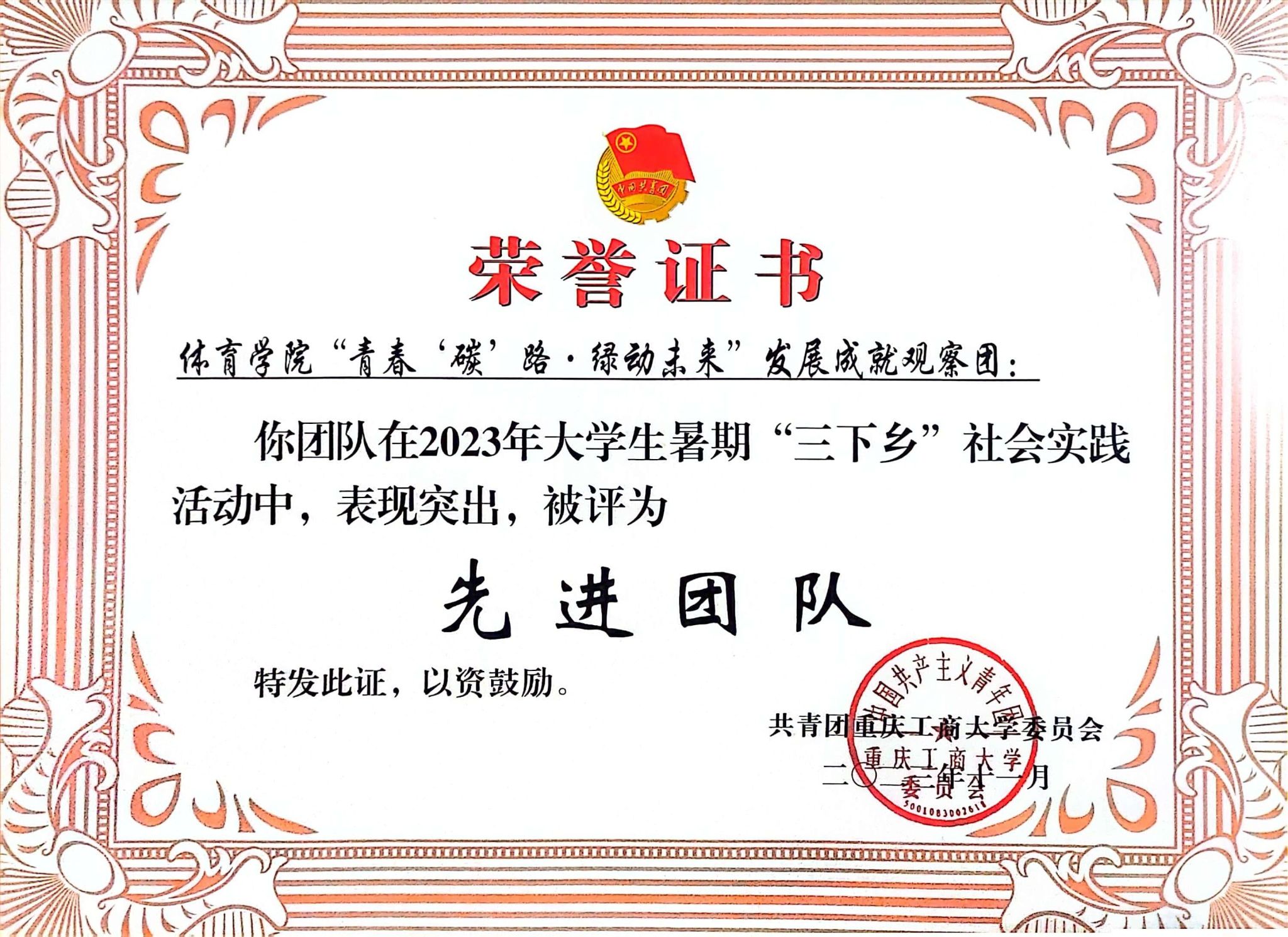 荣获大学生暑期“三下乡”社会实践活动先进团队