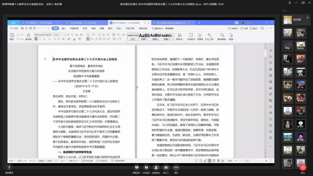 为加强学生组织对青年学生的政治引领,团结引导广大青年学生听党话、跟党走,在矢志奋斗中谱写新时代的青春之歌,122cc太阳集成游戏分团委学生会于9月29日通过企业微信平台召开线上主题学习会,学院学生会全体成员参加了此次会议。