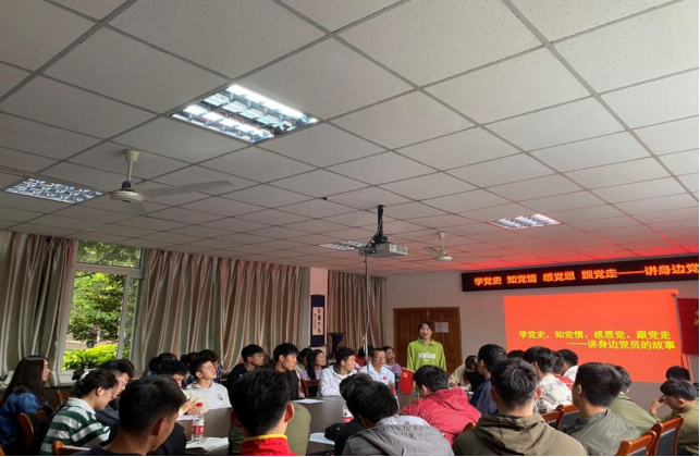 坚持学思践悟和坚定信念相结合,结合“学党史、强信念、跟党走”为主题,开展“讲身边的党员故事”活动,讲述感人的党员故事,讲述平凡人做着不平凡的事,让在场的同学们经历了一场思想的洗礼,也重温了我党波澜壮阔的革命史。