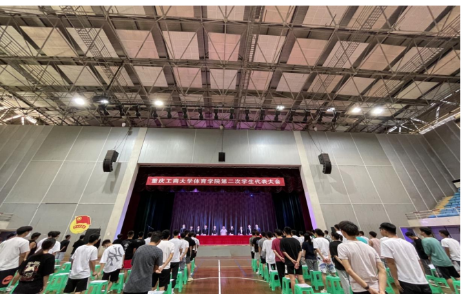 不忘初心跟党走,砥砺奋进立成才。2021年9月25日上午,122cc太阳集成游戏第二次学生代表大会在体艺馆隆重开幕。122cc太阳集成游戏党总支书记王竹青、122cc太阳集成游戏分团委副书记傅杨、校学生会主席团成员杨凌云同学及全院学生代表、嘉宾等共计100余人参加了本次大会。