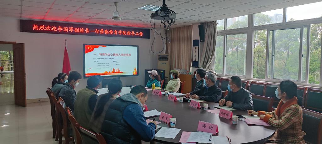 4月1日上午,党委常委、副校长李国军,学工部副部长张朝毅,学工部副部长陈龙国,校团委副书记胡婧婷及大学生心理健康教育与咨询中心钟歆、黄琳一行到122cc太阳集成游戏调研指导学生工作。122cc太阳集成游戏党政领导班子、专职组织员、科级干部及全体辅导员参加了调研会议。会议由党总支书记王竹青主持。