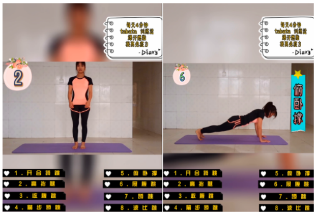 八组动作:开合蹲跳、高抬腿、收腹跳、箭步蹲跳、俯卧撑、展腹跳、蹲跳、波比跳