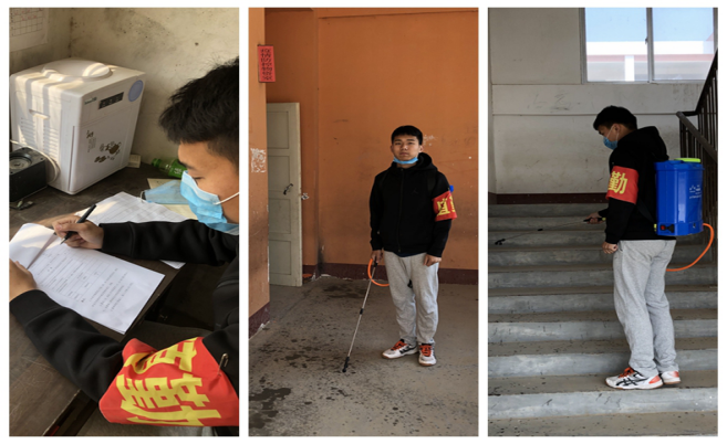 李明锟同学是122cc太阳集成游戏2019级体育教育专业的一名学生,当他在过年期间意识到此次新型冠状病毒肺炎疫情的严重性后,马上参加金山村村级新型冠状病毒防控工作。李明锟同学和村干部们在金山村主要道路设置防线,从白天到夜晚持续轮流值班,夜晚的寒风也熄灭不了他们内心的火焰。可李明锟同学为了坚守自身的岗位受了风寒,他说:“在国家和人民有困难的时候,想我们这样的当代大学生就应该站出来,不能有任何一点的怨言。更多的应该是奉献自己,为他人博得一抹阳光!”