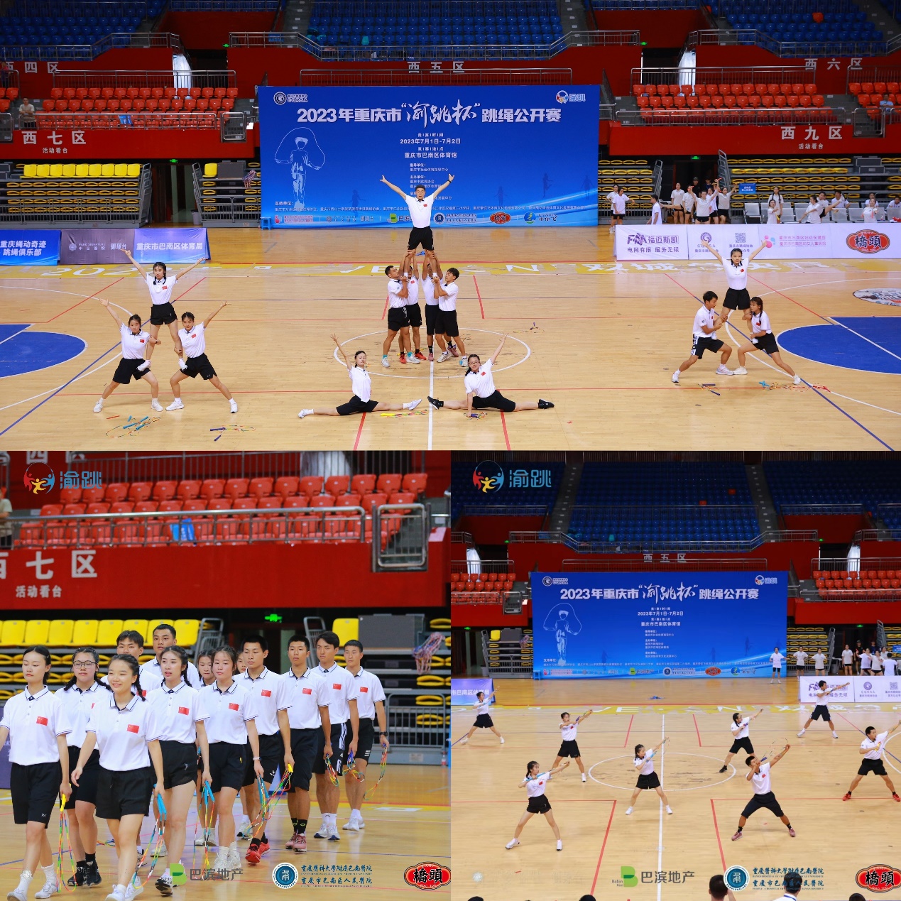 由重庆市跳绳协会、重庆市巴南体育局主办的2023年重庆市“渝跳杯”跳绳公开赛,于2023年7月1日—2日在重庆市巴南体育馆开幕。我校师生代表队参加开幕式。