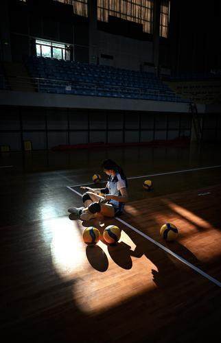 结束完一天的训练,这一届女排队长田秀权找了个角落坐下来,慢慢解开手腕上和脚踝处打的绷带。