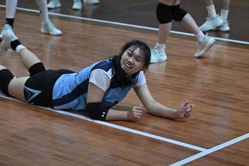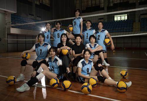 一声接着一声的计数声响起。6个身着浅蓝色运动服的女孩,紧紧盯着空中翻飞的排球,汗水顺着脖颈滚进衣领。她们双手上下叠放,稳稳托住每一次来球。