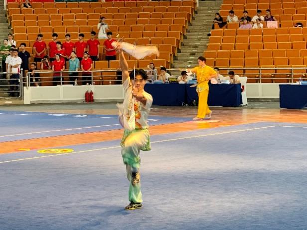 在本次比赛中,我校武术队员们秉持“厚德博学、求是创新”的校训,以精湛的技艺和顽强的拼搏精神,在全国赛事中充分展现当代大学生的青春风采和武术魅力。